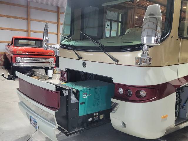 Highlights: One Owner Detroit Series 60 – 515HP 4 Slide-Outs Premium Interior Finishes Washer/Dryer Trailer Included Excellent Paint Condition